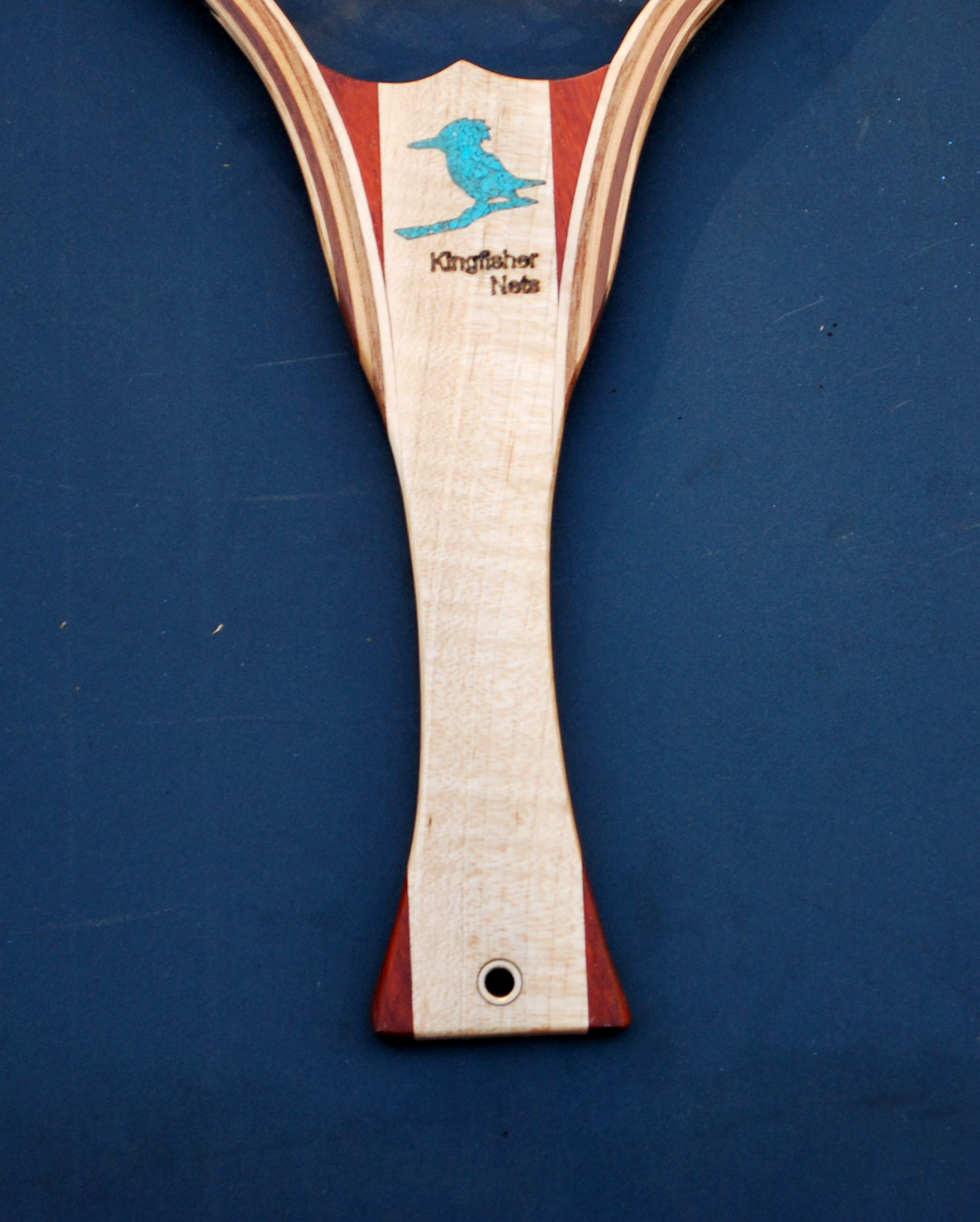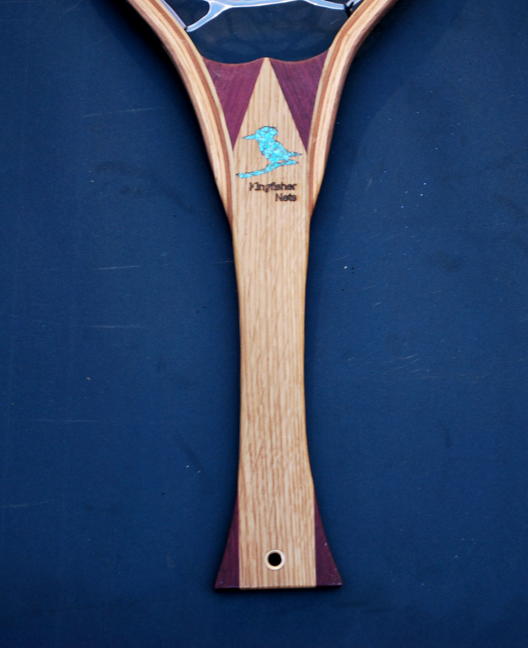 Kingfisher nets are each handcrafted from wood of your choice, from reclaimed heirloom hardwood for environmental enthusiasts to beautiful exotics. Nets are inlaid with a beautiful kingfisher design made of pure turquoise from Arizona’s Kingman mine. Every net is designed to be kind to the water, the fish, and your hands. View previously sold and crafted nets to see more and learn what I can make for you!
